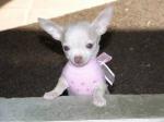 I've got two pampered pets. The picture of Molly was taken right after she broke her leg falling down the stairs. She was 5 months old at the time. She's 4 now. Peanut, my Chihuahua, has had a variety of health problems. When she was about 6 months old, she got vasculitis in her ear veins which resulted in necrosis along the rims. No vet could figure out what to do. Her ears were literally rotting off. I ended up taking her to the veterinary school of medicine at NC State University. The vets there think the cause was the rabies vaccine. At the vaccine sight, she had a knot for months and the muscle there eventually died, but it doesn't cause her problems. They prescribed an ointment for her ears that decreases the auto-immune response, similar to medication they give transplant patients. I had to put it on using gloves because it can cause cancer. Her ears healed up nicely although they look a little moth-eaten. She also has epilepsy, so she's on phenobarbital twice a day for the rest of her little life. Peanut is a great dog though. I took her to work until she was 6 months old so she is well socialized. Peanut is 3 yrs old now.